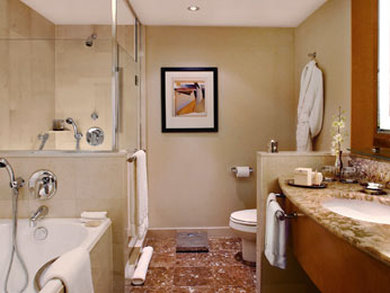 “The rooms and bathrooms are large for NYC, very soft beds and large bathroom with large tub and separate shower complete with fresh orchids and scented candles.”
